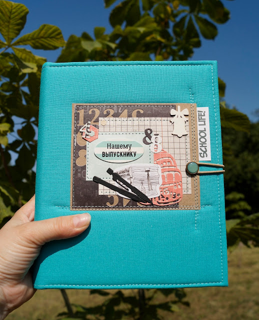 Размер альбома 15х20 см. Использовала коллекцию "School life" от нашего спонсора Арт-Империи "Eco-Luxury" - набор бумаги 30х30 см, 2 набора фишек, набор высечек.