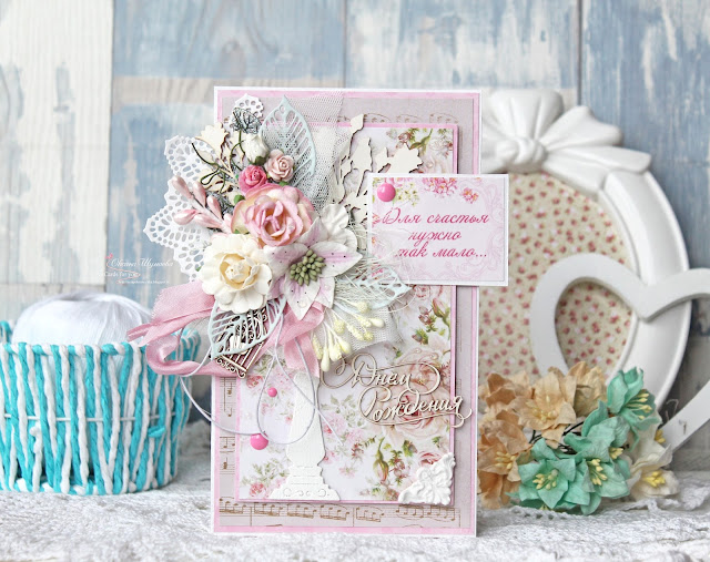 В работе использовала коллекцию бумаги Springtime от Mintay paper 15х15 см.- такая она весеееняяя.))) А так же множество вырубки от Mimicut.