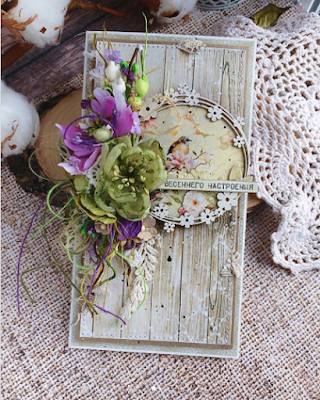Оля, так приятно было читать ваше описание весны к открытке! Сразу становится понятно, что тут нет ни одной случайной детали! Цветы из фома смотрятся шикарно! Отличная альтернатива розочкам:)
